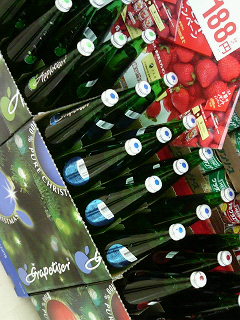 左からりんごグレープ(ホワイト)グレープ(レッド)だそうな。ジュースらしい…