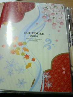 手帳購入~デザイン的には好き。本当はもう少しシックな柄のがよかったけど、週単位もついてたのでこっちにしました。中身はイベントと遊びだけよ?(誰が仕事のことを書くか!)
